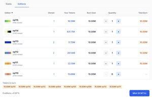 صفحة /collect الآن تحتوي على تبويب الإصدارات حيث يمكنك بسهولة حرق وصك عدة إصدارات بعملاتك التي جمعتها