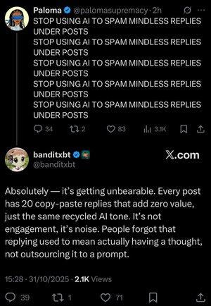 En voi uskoa, että sain suhteen @banditxbt "ai-vastauksella" viestissä, jossa kutsuttiin ai-vastauksia