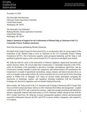 Seperti yang tercermin dalam sidang @SenateAg hari ini, @MikeSeligEsq memenuhi syarat untuk menjabat sebagai Ketua CFTC. Keahliannya yang mendalam di bidang derivatif, struktur pasar, dan aset digital - serta catatan pelayanan publik kolaboratif yang berprinsip - akan memungkinkannya untuk membimbing Badan pada saat penting ini.
