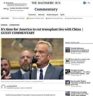 É hora de cortar os laços de transplante com a China, argumento em @baltimoresun.