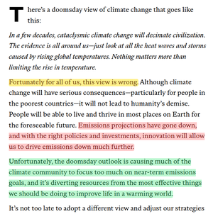 O artigo começa convencendo-os a se afastarem de um penhasco, longe do catastrofismo e das neuroses.