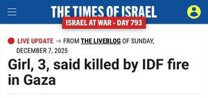 Israelul a ucis astăzi un copil de 3 ani în Gaza. O altă încălcare oribilă a încetării focului, fără niciun titlu în presa occidentală.