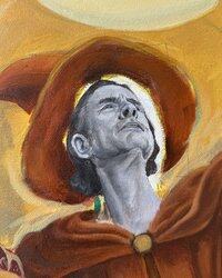 Сначала я рисую в черно-белом гризайле, а затем накладываю цветные глазури, как старые мастера.