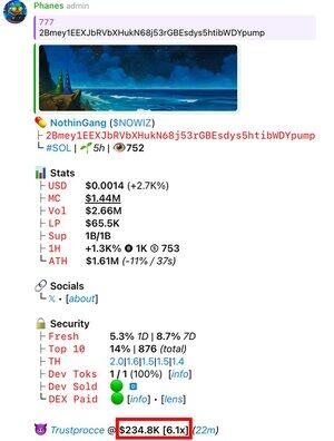 在私人聊天中,@Trustprocce 发布了一个关于 $NOWIZ = 6X 的清晰呼叫