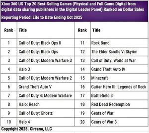 Xbox 360 在今天發售滿 20 年 🎮 以下是美國歷史上最暢銷的 20 款 Xbox 360 遊戲:
